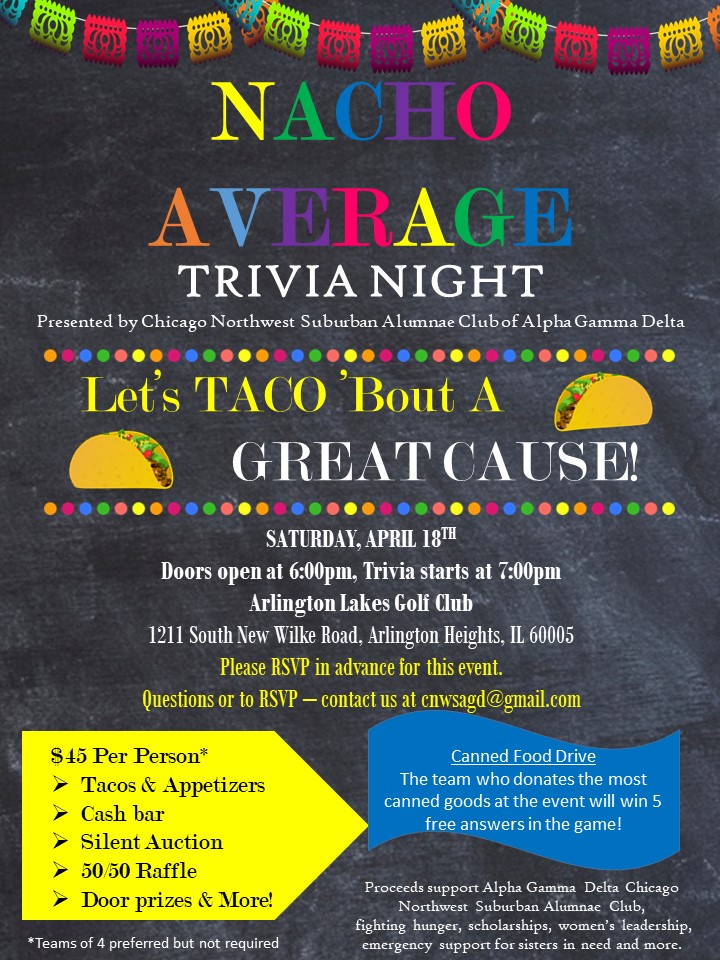 Sep 08, 2012 · trivia nights in the chicago suburbs arlington heights: Trivia, charades, and drawing via video. Sometimes trivia can be cancelled for special events and whatnot. I highly suggest calling whichever chicago trivia location first to verify time and if they are still having it that particular night. Save chicago virtual game night: